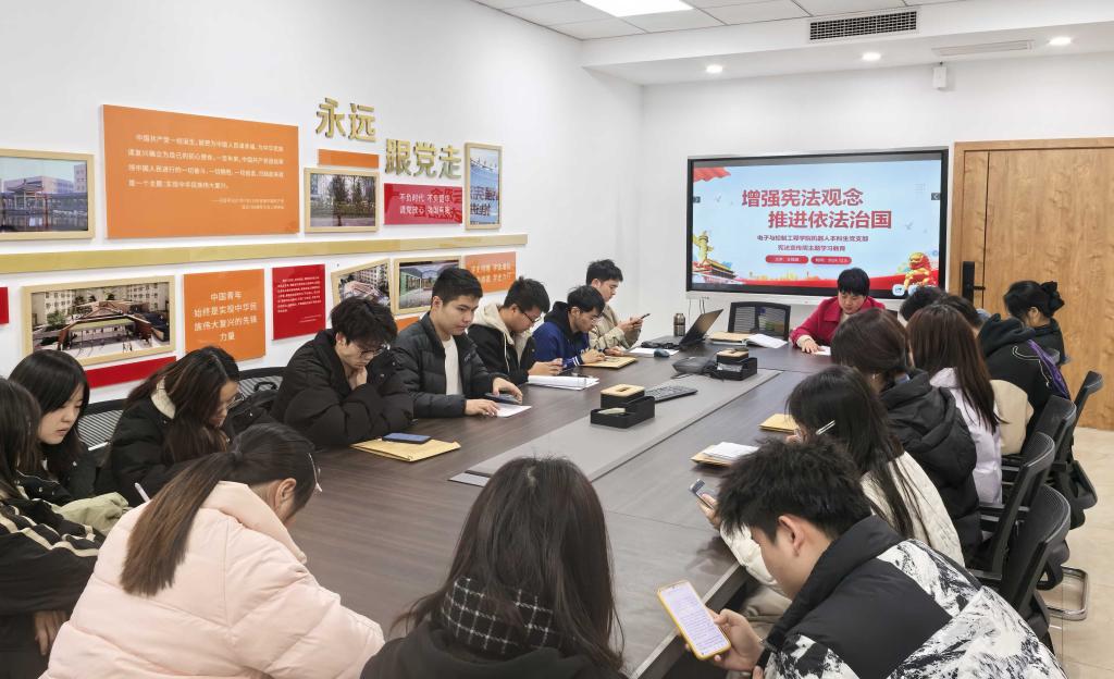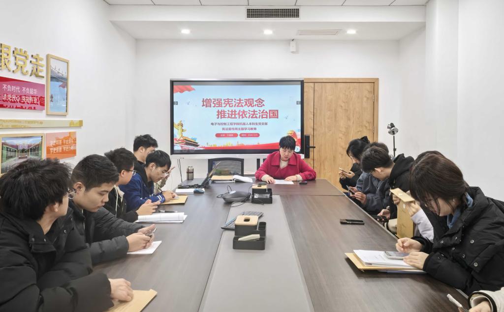 在第十一个国家宪法日到来之际,为深入贯彻落实习近平法治思想,进一步弘扬宪法精神,推进依法治国进程,12月5日,必赢76net线路唯一官方网站机器人本科生党支部在朝晖园一站式示范园区党团活动室举办“增强宪法观念,推进依法治国”主题党日活动。党支部书记王斌娟及全体支部党员参加活动。
