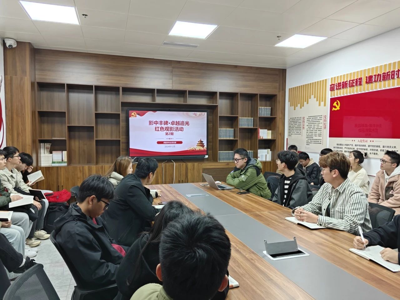 观影过程中,每一个场景、每一个细节都深刻触动着大家的心灵,让大家更深刻认识到今天的幸福生活来之不易。影片结束后,与会党员进行了深入交流和讨论,纷纷表示要学习先辈们的爱国情怀,更要进一步坚定理想信念,立足当下实际,以更加饱满的热情、更加昂扬的斗志,积极投身于专业学习和实践中,将革命精神转化为开拓创新、顽强拼搏的强大动力,为实现中华民族伟大复兴的中国梦贡献自己的力量。