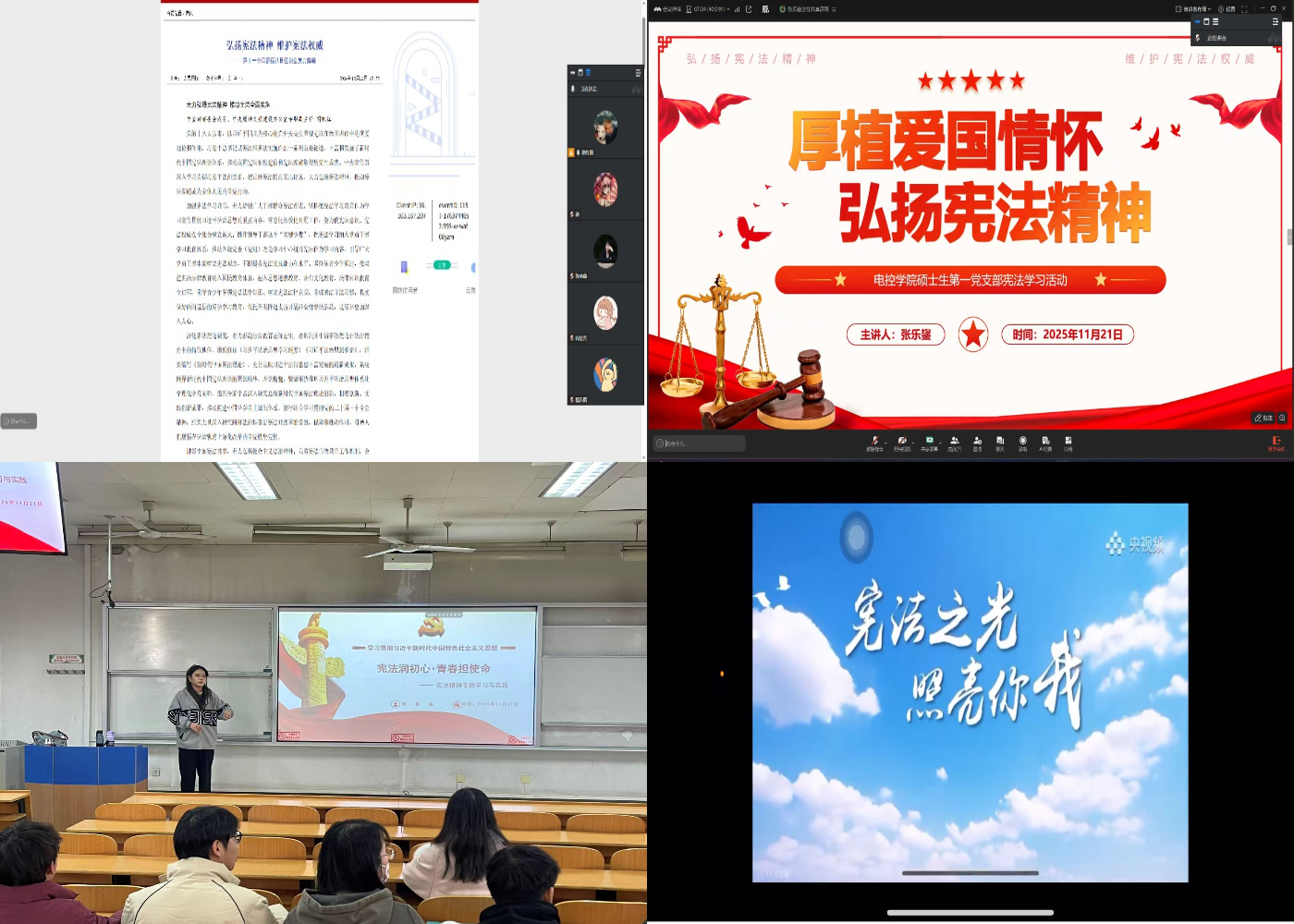 为深入学习贯彻习近平法治思想,弘扬宪法精神,引导学生党员厚植爱国情怀、担当时代重任,近日,必赢76net线路唯一官方网站学生党支部开展了“学习宪法精神,担当时代重任”系列主题党日活动。各支部通过领学解读、观影研讨、晨读宪法等多种形式,教育引导广大学生党员深刻领会宪法要义,以奋发有为的姿态投身“十五五”建设,为法治中国建设贡献青春力量。