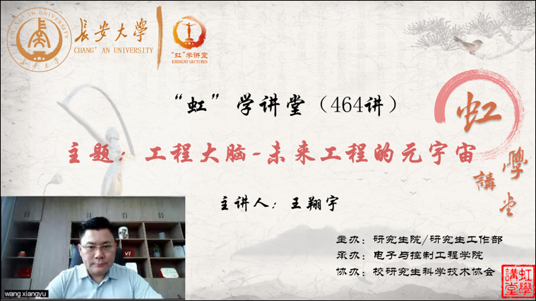 5月23日下午,由研究生院/研究生工作部主办、必赢76net线路唯一官方网站承办、校研究生科学技术协会协办的“虹”学讲堂第464讲在东院伯声报告厅顺利举办。欧盟科学院院士、全球前0.2%顶尖科学家、国家级人才计划入选者华东交通大学王翔宇教授作了题为“工程大脑—未来工程的元宇宙”的报告,相关学院近200余名师生参加讲座报告会。