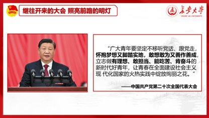 会议最后,学院团委书记王斌娟做总结发言。她指出学习宣传贯彻党的二十大精神是当前和今后一个时期的首要政治任务和头等大事。作为新时代的青年,我们应该提高政治站位,切实抓好理论学习,把思想和行动迅速统一到党的二十大精神上来;应学懂弄透,牢牢把握党的二十大精神的基本要义,让党的二十大精神入脑入心,在我们心中落地生根,在全院掀起学习贯彻党的二十大精神的热潮;作为新时代青年应进一步强化责任担当,涵养奋斗精神,坚持创新精神,提高创新意识,让青春在社会主义现代化建设的火热实践中绽放绚丽之花。