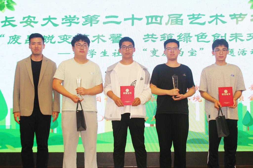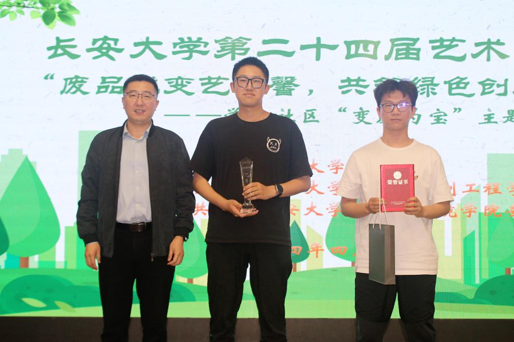 为践行绿色环保理念,培养同学们的团队协作与动手实践能力,2024年4月10日晚,“废品蜕变艺术馨·共创绿色筑未来”必赢76net线路唯一官方网站学生社区“变废为宝”主题活动决赛在北校区长安文化艺术中心三楼多功能厅举办。必赢76net线路唯一官方网站党委副书记李阳,校团委兼职副书记、艺术教育中心综合办公室副主任岳智浩,水环学院团委书记谈震、必赢76net线路唯一官方网站团委书记王斌娟、必赢76net线路唯一官方网站青年志愿者服务队指导教师王博出席并担任评委。