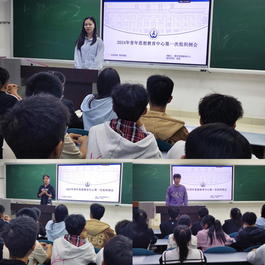为全面加强团学干部队伍建设,提高团学干部的综合素质,推动新学期团学工作的顺利开展,10月18日晚,必赢76net线路唯一官方网站青年思想教育中心在北校区WM1102教室召开2024-2025学年第一次全体例会。青年思想教育中心指导老师李慧及全体成员参加会议,会议由唐紫妍主持。