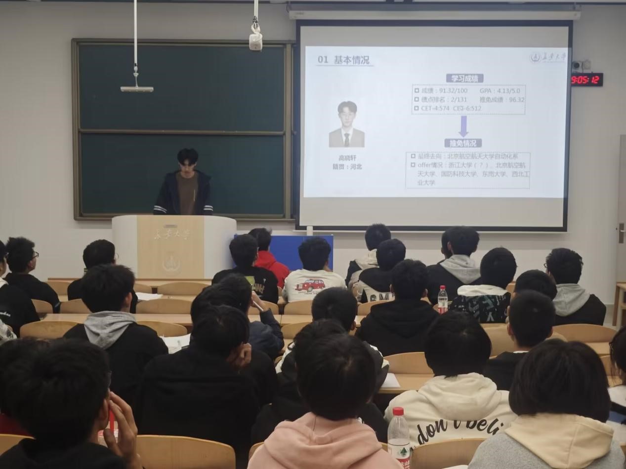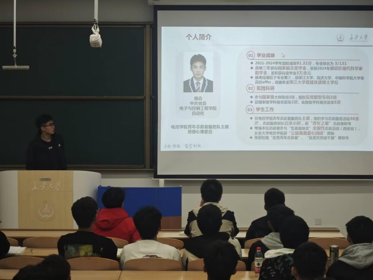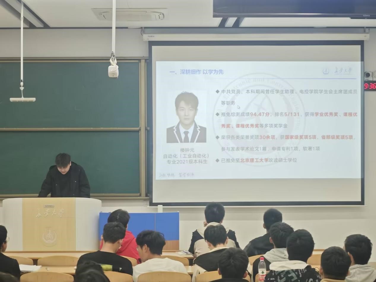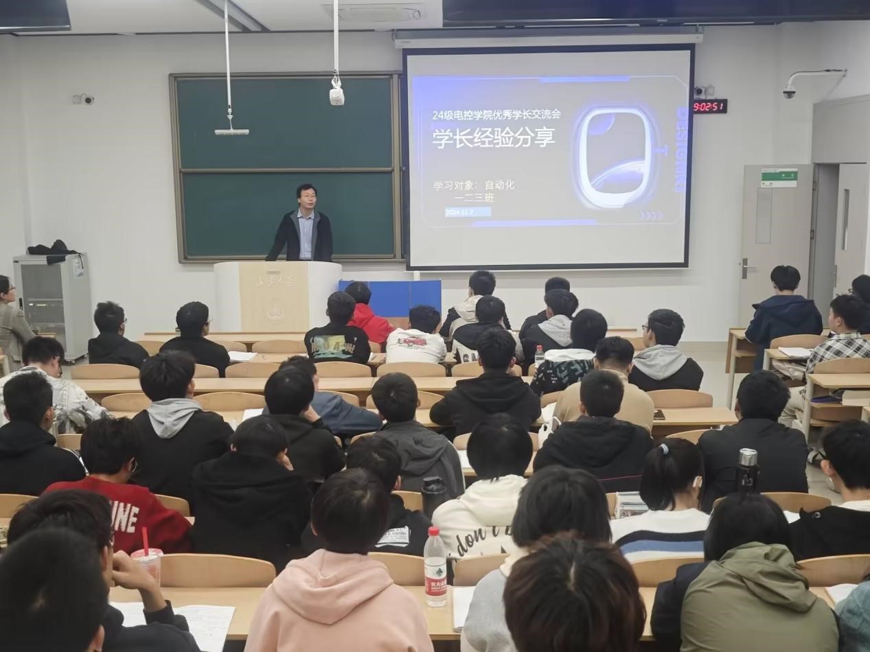 为充分发挥优秀典型的榜样示范作用,营造良好的学习氛围,进一步强化学院学风建设,必赢76net线路唯一官方网站““优秀学长经验交流会”于11月7日晚上19点在WH1101教室召开,会议邀请2021级保研学生高晓轩、楼钟元、周垚作经验分享,2024320101班班主任周经美,2024320101、2024320102、2024320103班全体同学参加会议,会议由自动化系副主任杨盼盼主持。