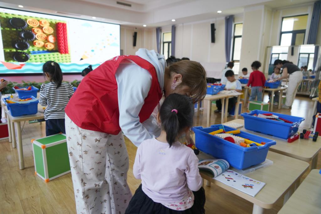 志愿者对上一节课所涉及的零件进行复习。她以清晰、详尽的讲解方式,助力幼儿园的小朋友们进一步巩固对各类零件的认识,深入掌握其结构特点及功能用途。在互动环节中,小朋友们积极参与,现场洋溢着浓厚的学习氛围。