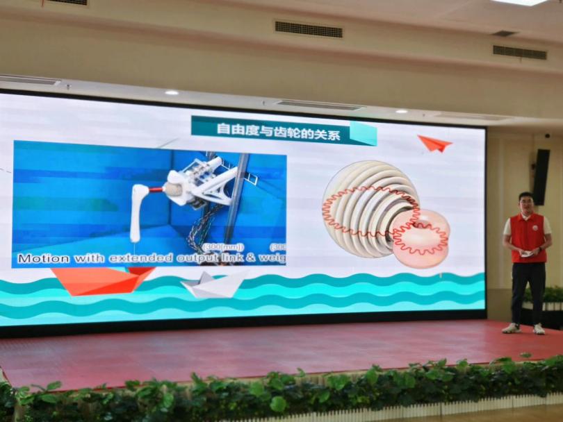 理论讲解环节,志愿者带领小朋友们观看了电影片段中齿轮的应用,并用动画直观地演绎齿轮精准啮合和有序转动,将复杂的机械原理化繁为简地展示在小朋友们眼前。通过这样循序渐进的讲解,抽象的机械知识变得触手可及,小朋友们不仅理解了齿轮转动的原理,更在心底埋下了探索机械奥秘的种子。