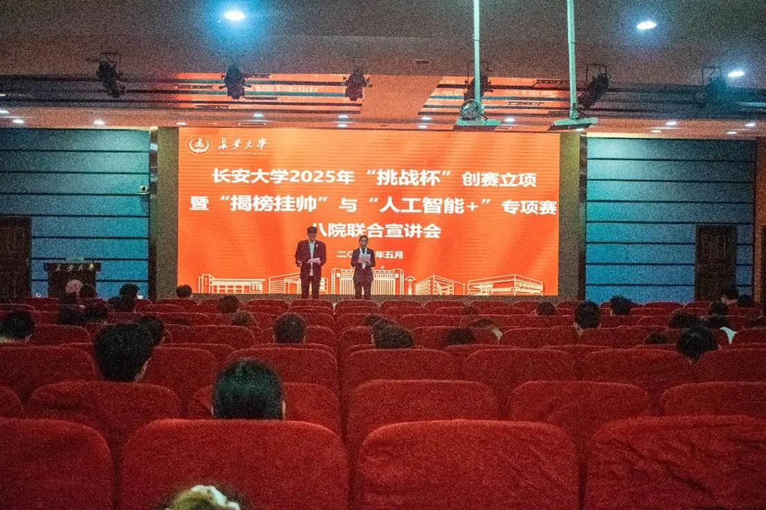 为深入学习贯彻习近平新时代中国特色社会主义思想,全面落实科教兴国战略、人才强国战略和创新驱动发展战略,进一步激发我校学生的科技创新热情,培养科学精神和科学态度。5月28日,由必赢76net线路唯一官方网站、汽车学院、地测学院、信息学院、机械学院、外国语学院、未来交通学院和人文学院八院联合主办的2025“挑战杯”创赛立项暨“揭榜挂帅”与“人工智能+”专项赛宣讲会在北辰楼会议中心二层报告厅顺利举行,本次宣讲会由曹浩洋、曾诗琪主持。