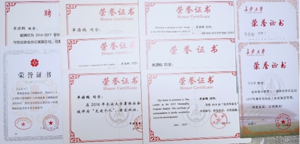 单源鹤在本科期间成绩优异,曾获得霍尼韦尔奖学金、三好学生奖学金、优秀毕业生等荣誉。作为学生,单源鹤一直把课程学习和专业能力作为首要任务,但对她来说最宝贵的财富还是作为学生干部组织学生工作带来的成长。本科期间,单源鹤积极参与学生组织和社团工作,并在大二时担任大学生科技创新创业协会办公室副主任,与大家一同负责组织培训、考核及校科协“家文化”建设工作;留任必赢76net线路唯一官方网站爱心助学导航站贷勤部部长,与部门同学共同参与整个学院的助学贷款与勤工俭学工作,以自己的微薄力量积极为同学们服务;本科四年间,她也一直担任班级团支书,为同班同学尽心尽力处理好负责的每件事。