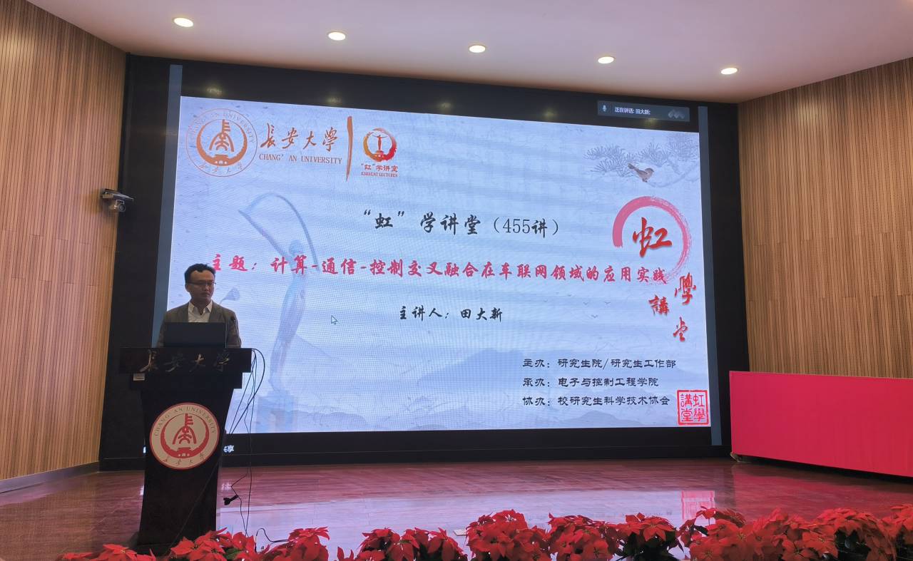 4月26日晚,由研究生院/研究生工作部主办、必赢76net线路唯一官方网站承办、校研究生科学技术协会协办的“虹”学讲堂第455讲以线下讲座形式顺利举办。北京航空航天大学田大新教授作了题为“计算-通信-控制交叉融合在车联网领域的应用实践”的报告,相关学院近300名师生参加讲座。
