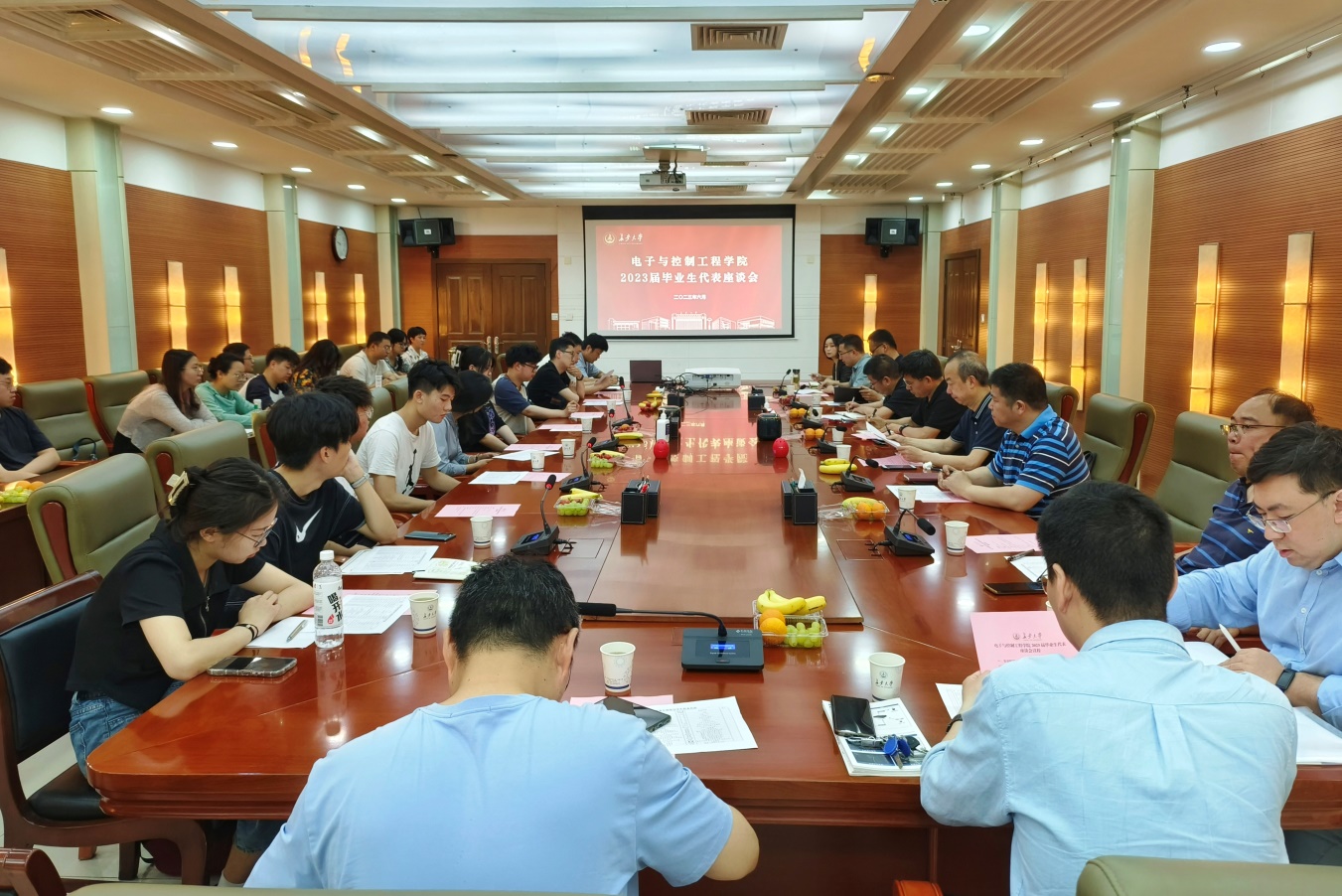 春风十里尽芳菲,踔厉奋发再前行。6月19日上午,必赢76net线路唯一官方网站在北辰楼会议中心第二会议室召开2023届毕业生代表座谈会,全体院领导、各系部室主任、学科科研研究生培养与管理主管、毕业班辅导员和本科生、研究生毕业生代表参会。座谈会由学办主任高婷主持。