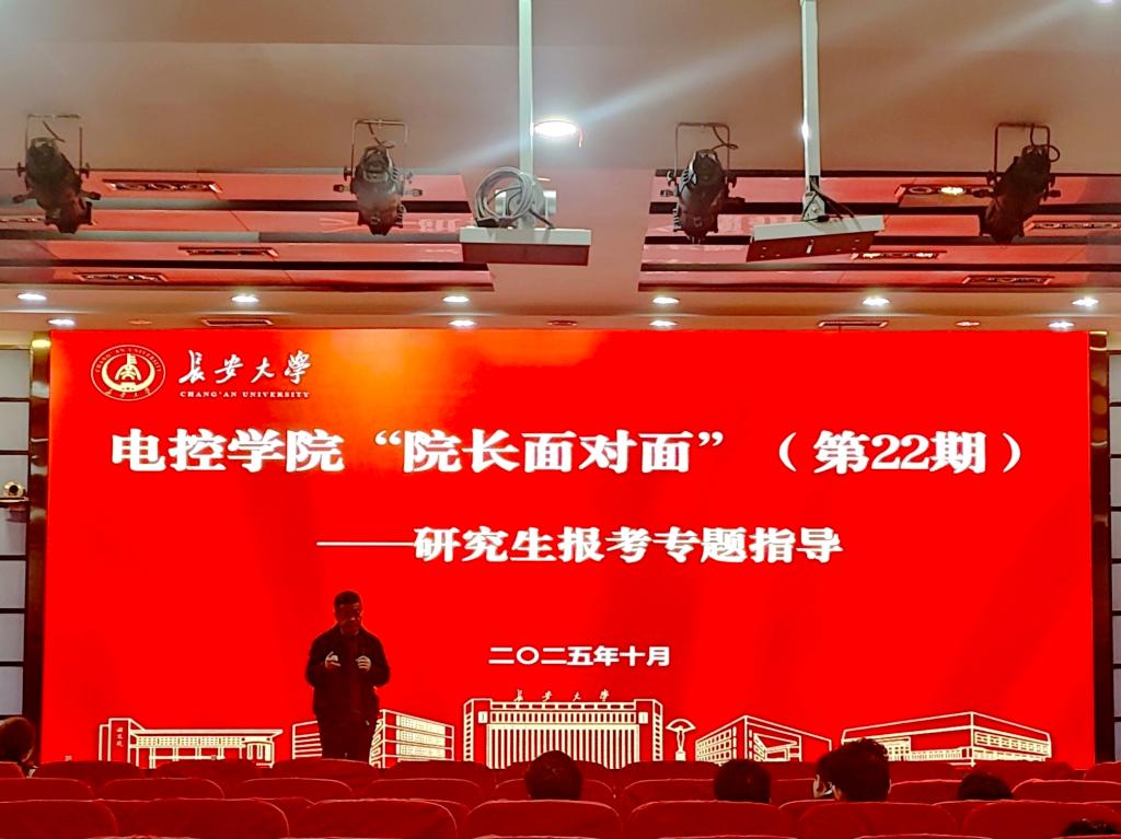 10月14日,必赢76net线路唯一官方网站在北辰楼会议中心二层报告厅举办“院长面对面”(第22期)——2026届本科毕业生考研报名指导专题讲座。讲座由学院院长闫茂德主讲,党委副书记高婷婷、学办主任刘平利和2026届考研学生参加。