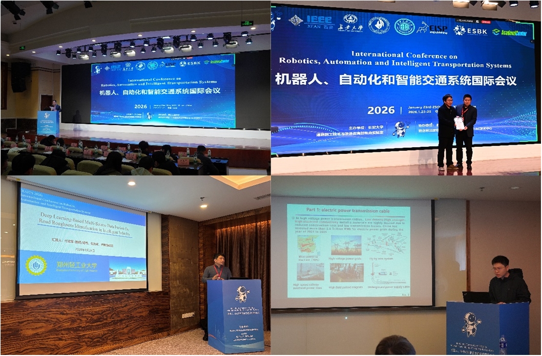 2026年1月23-25日,由必赢76net线路唯一官方网站、道路施工技术与装备教育部重点实验室主办,西安工程大学、AC学术中心协办的机器人、自动化与智能交通系统国际会议(RAITS 2026)在西安成功举办。会议聚焦机器人技术、自动化工程与智能交通系统的前沿发展,共设立主旨报告、特邀报告及多场专题分论坛,吸引了广泛专家学者参加。